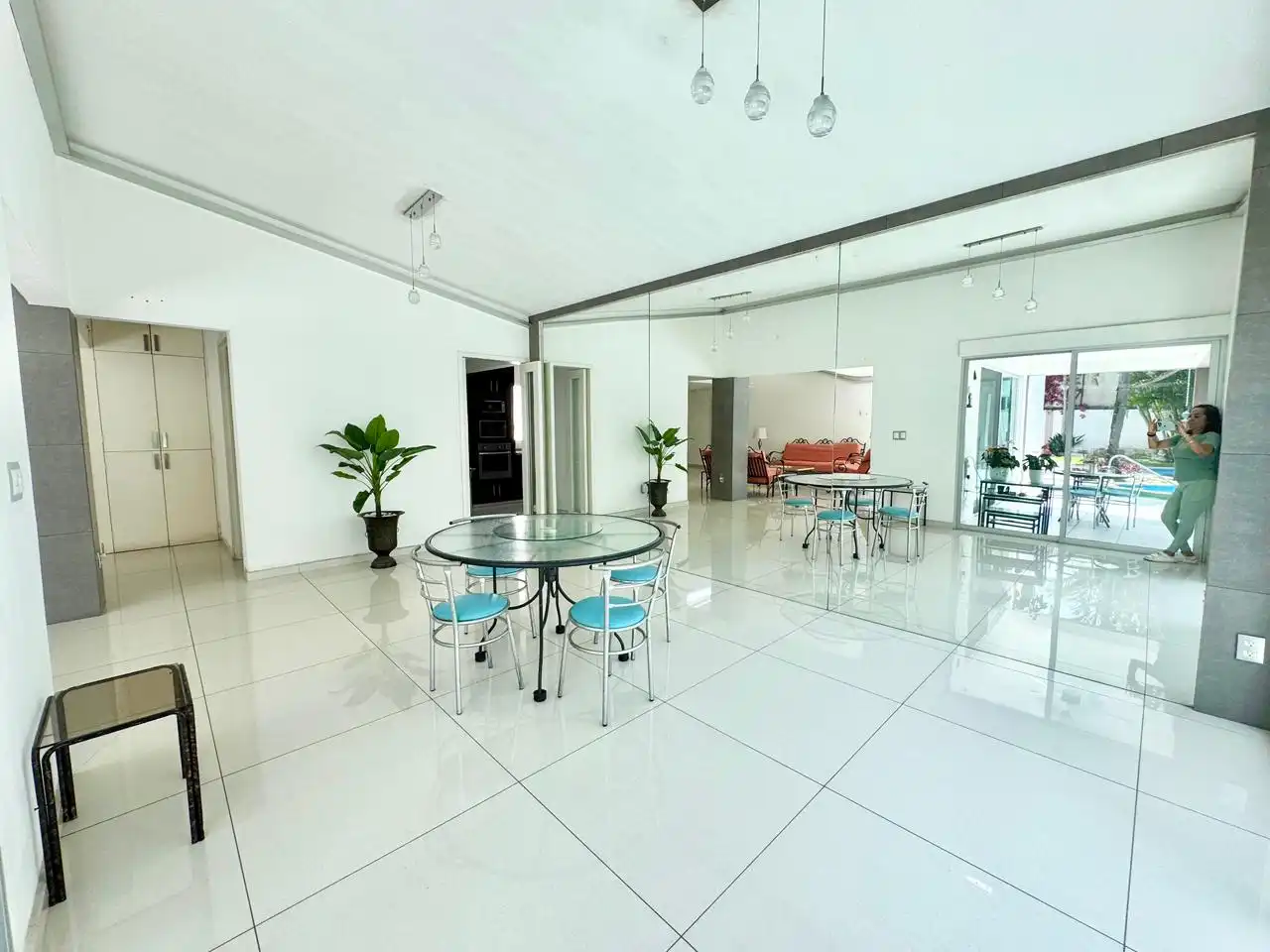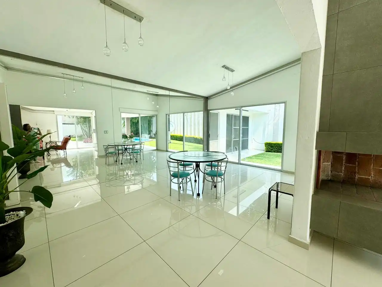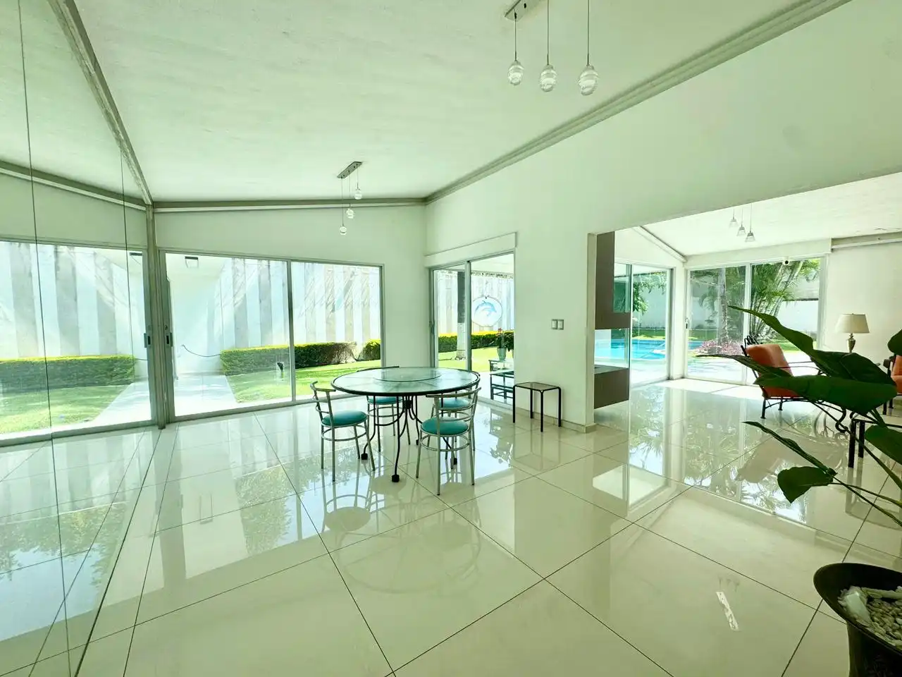 Garaje para 3 autos techados * lobby recibidor * sala y comedor muy amplios * estudio * cocina equipada también muy amplia * cuarto de lavado y tendido * 4 recamaras muy amplias cada una con baño completo y closets, la principal con vestidor * salón de juegos en el jardín con baño completo * amplio y hermoso jardín maduro * alberca de muy buen tamaño * terraza alrededor de toda la casa y cada recámara sale a la terraza y al jardín al igual que la sala y el comedor. * portón eléctrico tipo americano. * muro chillón en la entrada con un jardincito frontal.