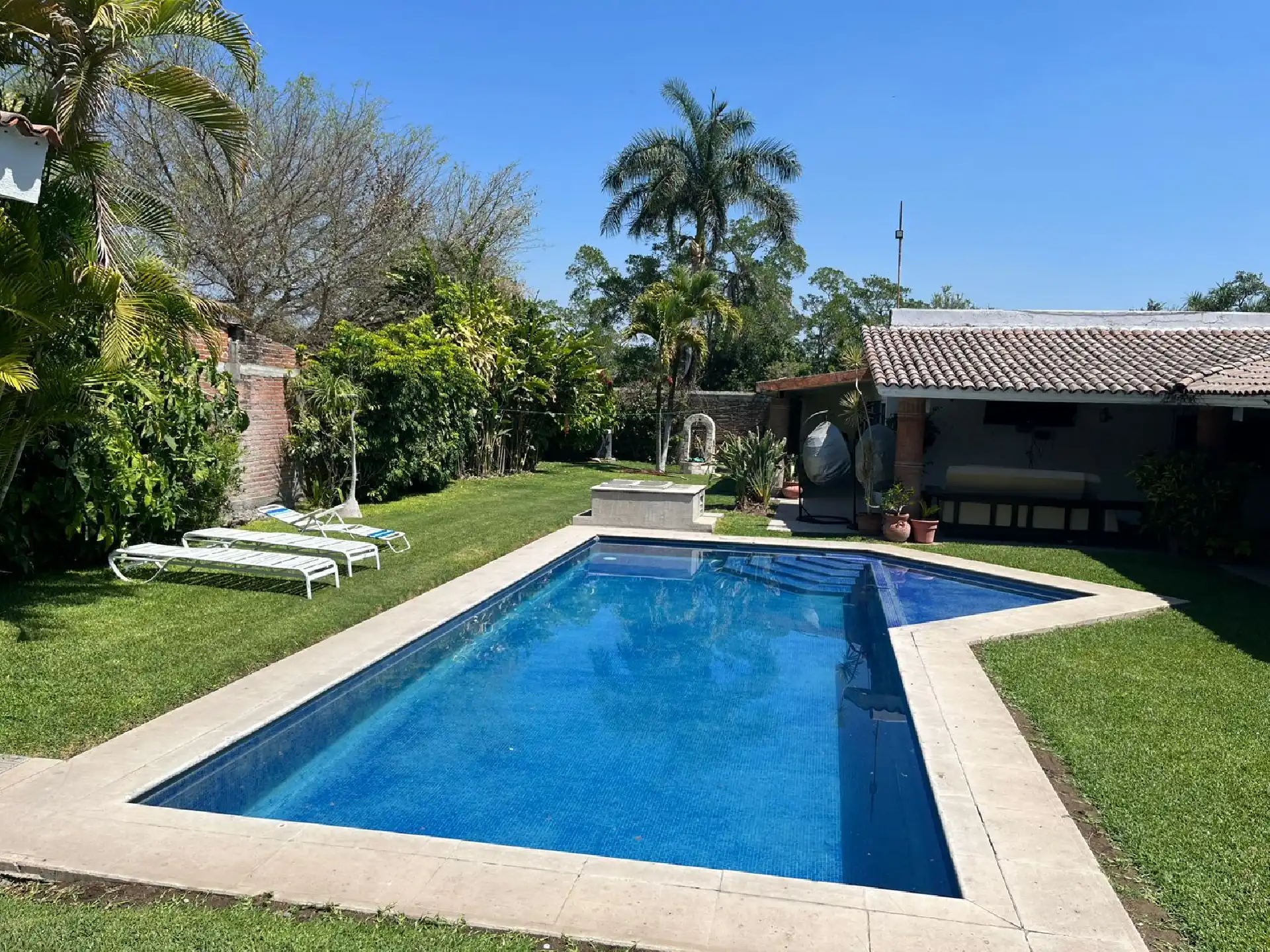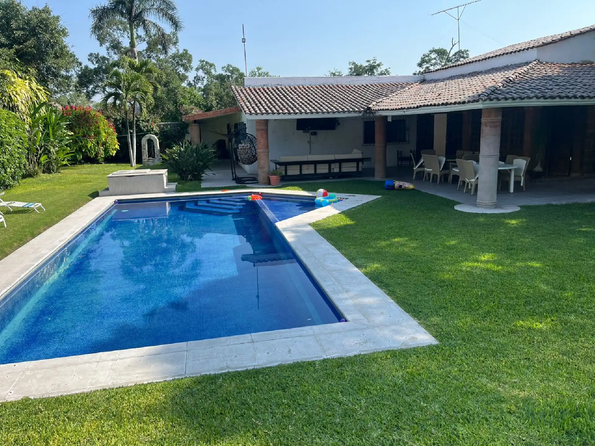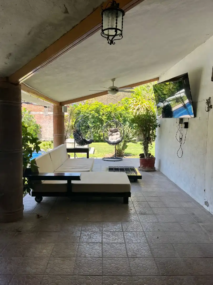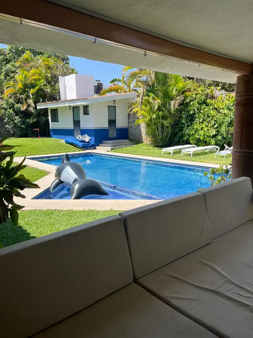 Confortable y Excelente casa en Mazatepec, Morelos, Casa de un solo nivel con hermoso jardín maduro y alberca privada. Cuenta con: • Jardín maduro • Alberca con cuarto de máquinas • cuarto o bodega con baño en el área de alberca • Terraza alrededor de toda la casa • Sala • Comedor • Amplia cocina • Área de lavado • Cuarto de servicio • 5 recamaras, la recámara principal con su propio baño completo y dos baños que comparten las otras recámaras; 4 recámaras con aire acondicionado y ventilador de techo • Cuenta con pozo propio Terreno: 1006 M2 Construcción: 300M Venta $4,500,000 Excelente para fin de semana y disfrutar a lo máximo con toda tu familia e invitados ¡Conócela! ¡¡Te va a encantar!!