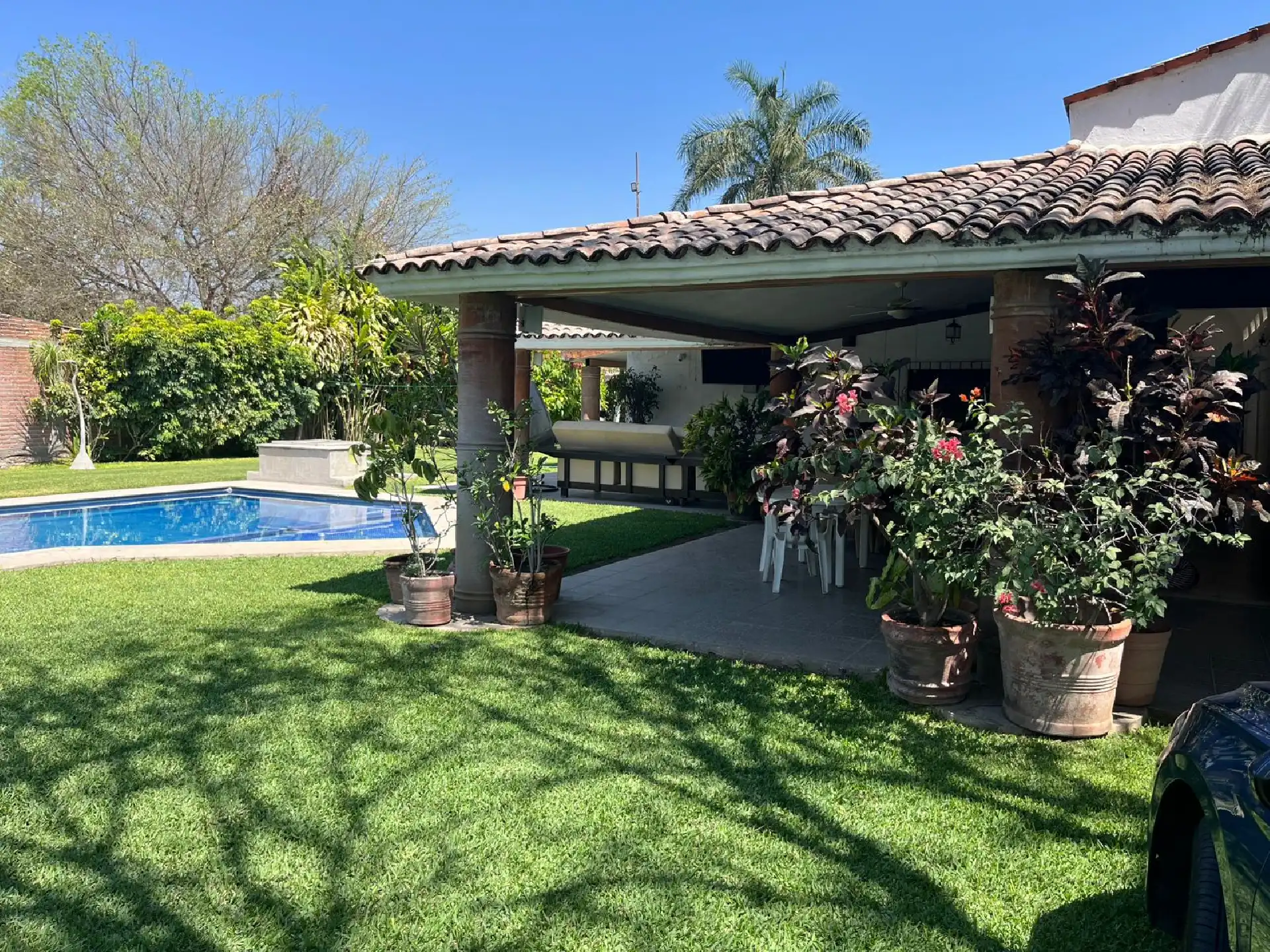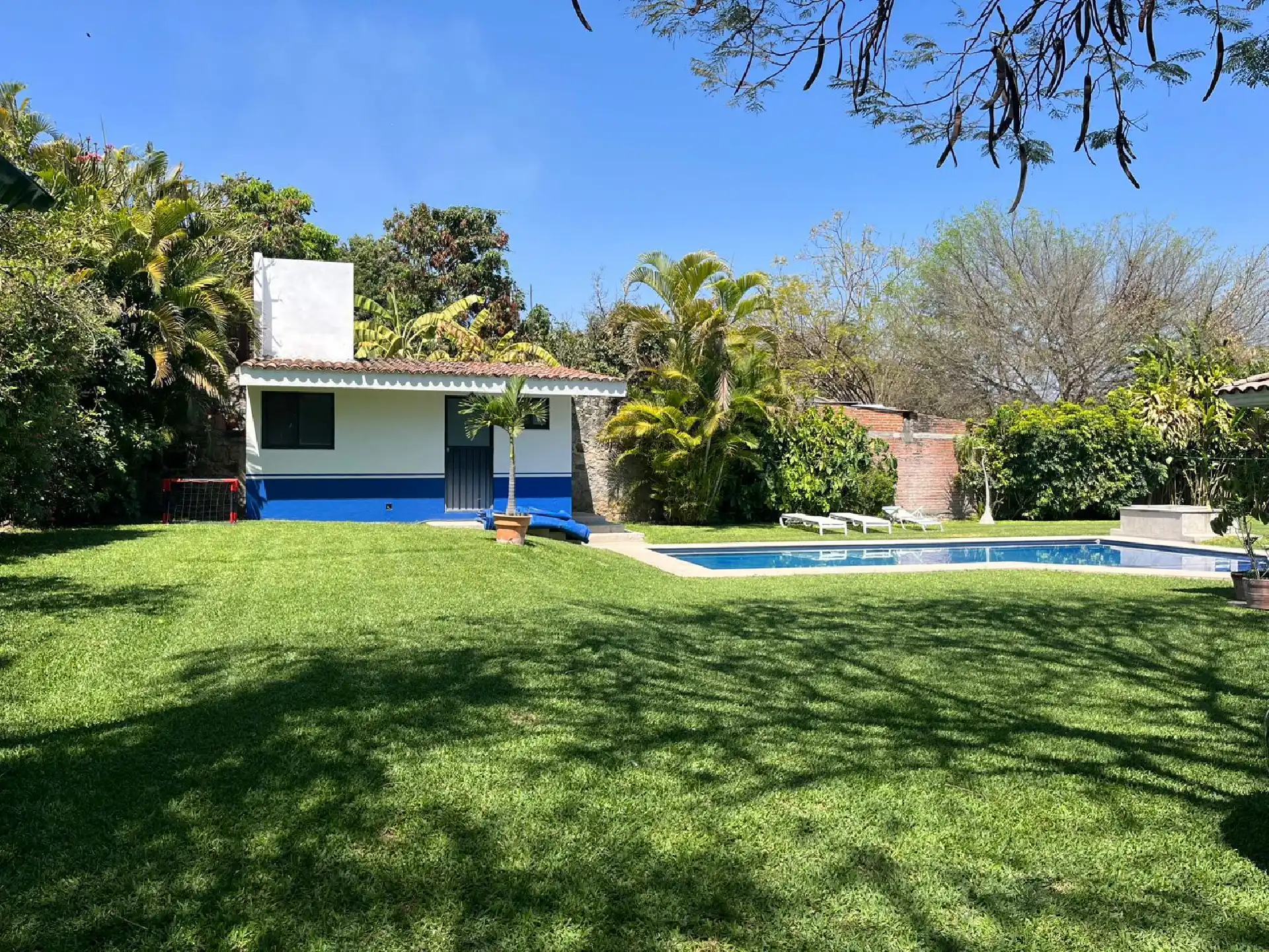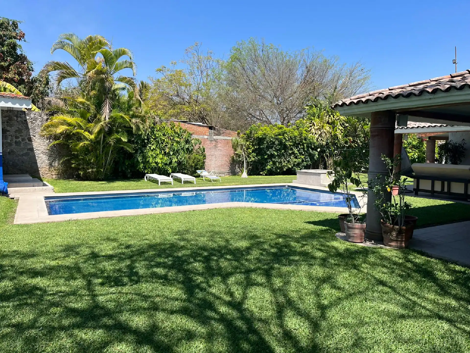 Confortable y Excelente casa en Mazatepec, Morelos, Casa de un solo nivel con hermoso jardín maduro y alberca privada. Cuenta con: • Jardín maduro • Alberca con cuarto de máquinas • cuarto o bodega con baño en el área de alberca • Terraza alrededor de toda la casa • Sala • Comedor • Amplia cocina • Área de lavado • Cuarto de servicio • 5 recamaras, la recámara principal con su propio baño completo y dos baños que comparten las otras recámaras; 4 recámaras con aire acondicionado y ventilador de techo • Cuenta con pozo propio Terreno: 1006 M2 Construcción: 300M Venta $4,500,000 Excelente para fin de semana y disfrutar a lo máximo con toda tu familia e invitados ¡Conócela! ¡¡Te va a encantar!!