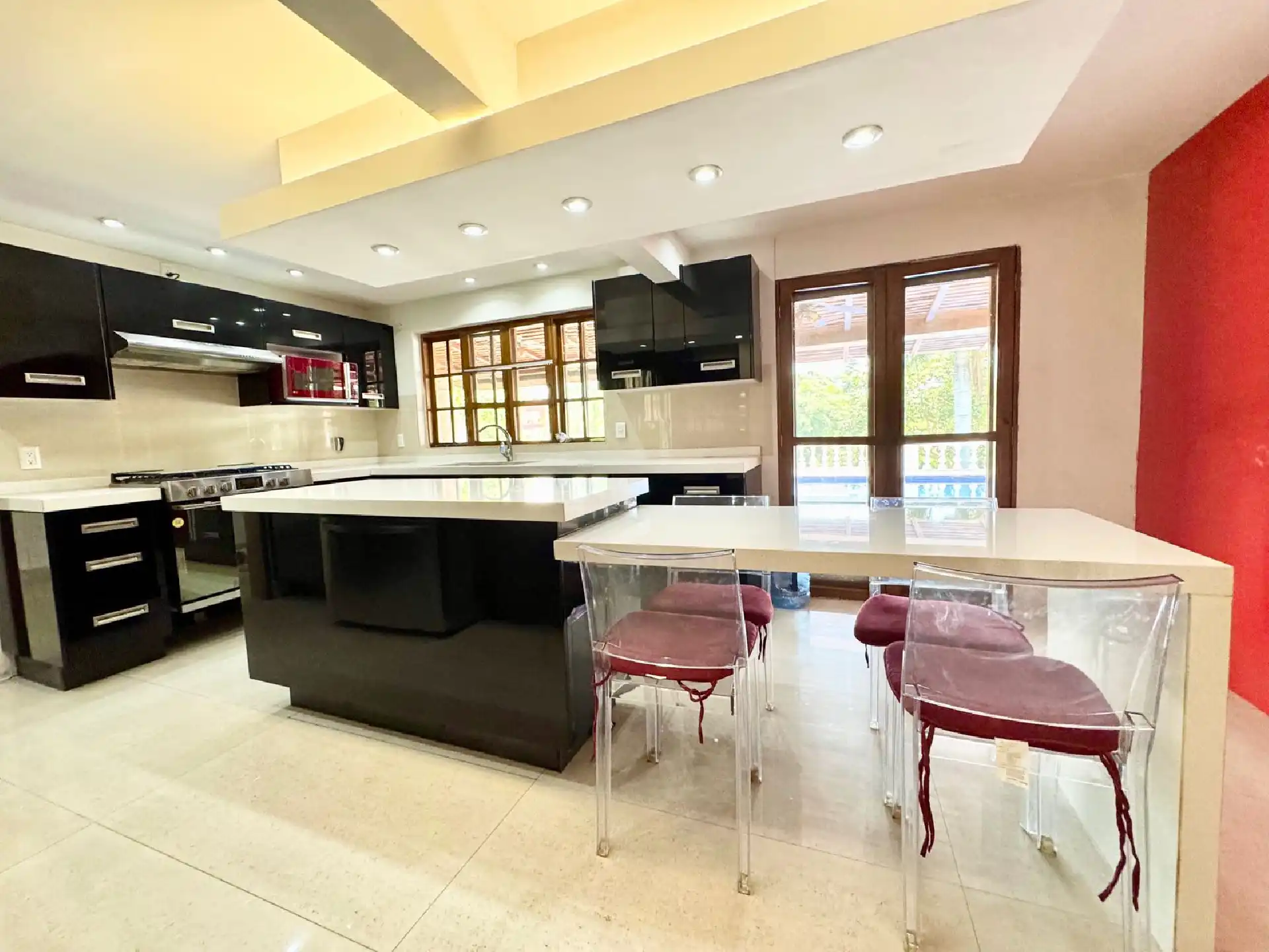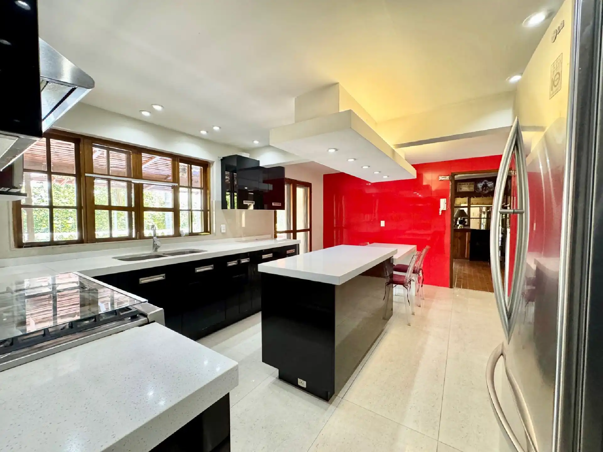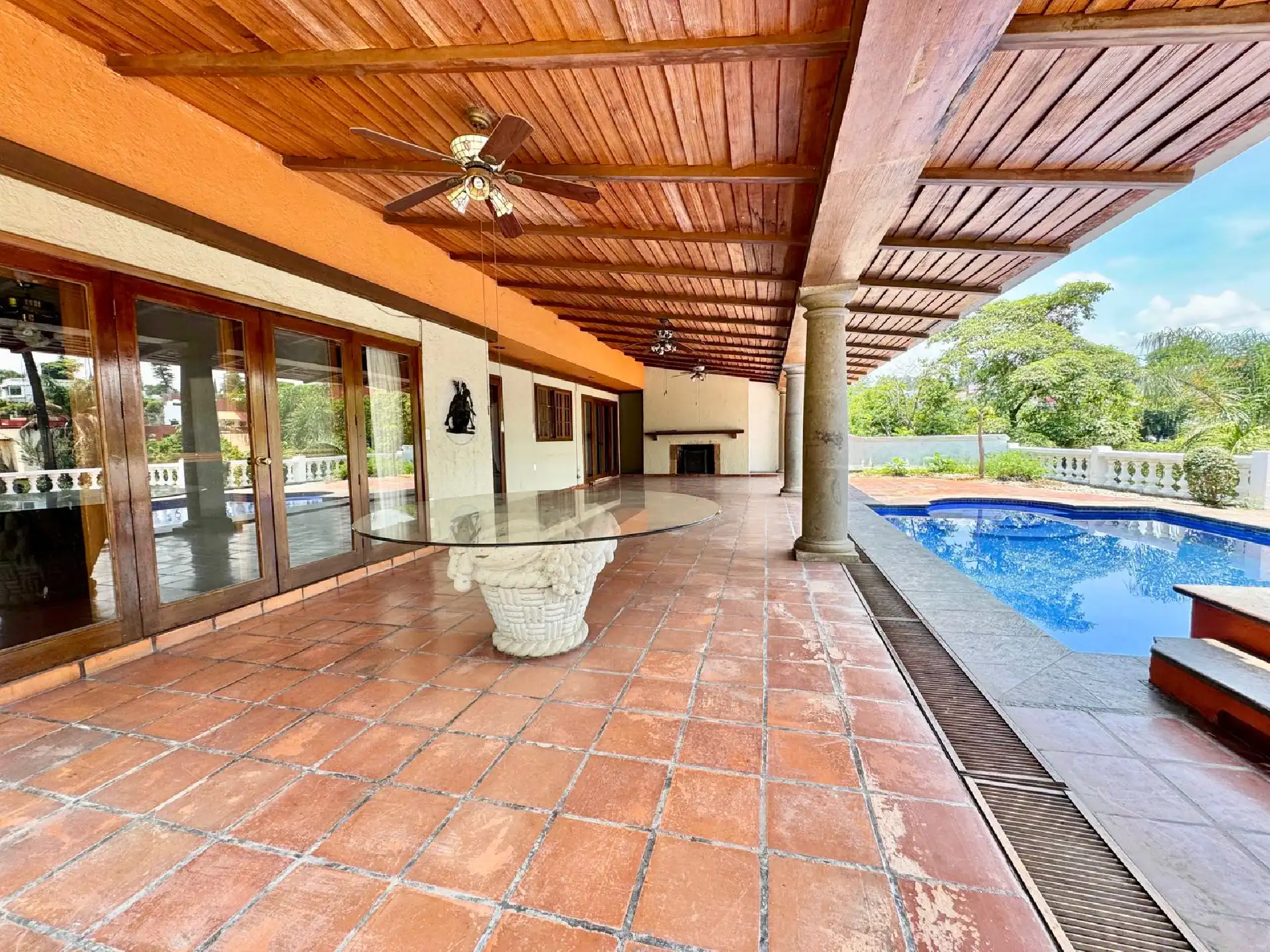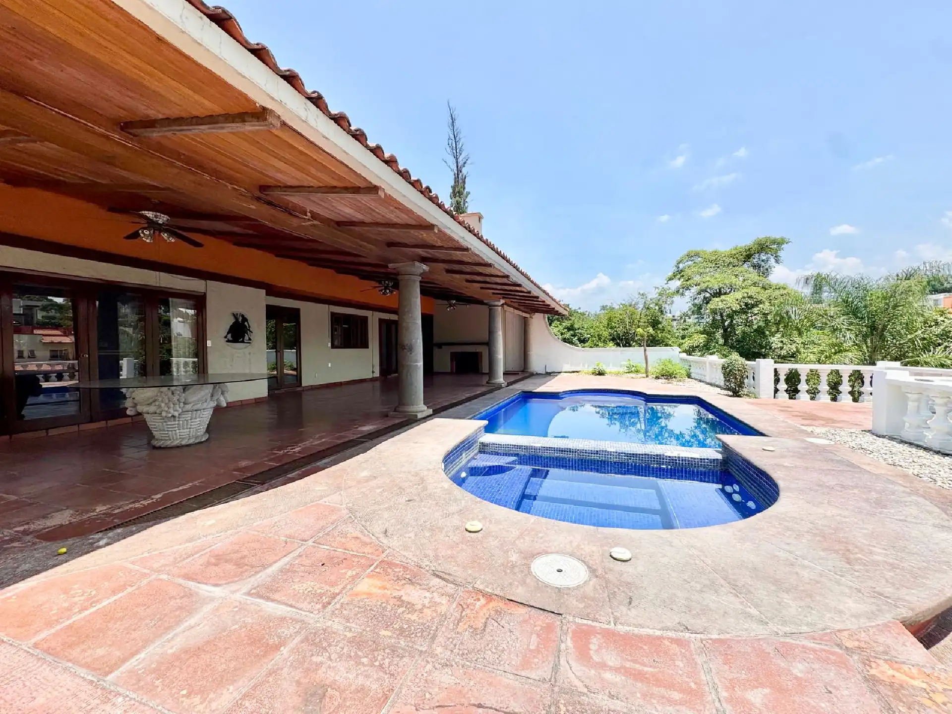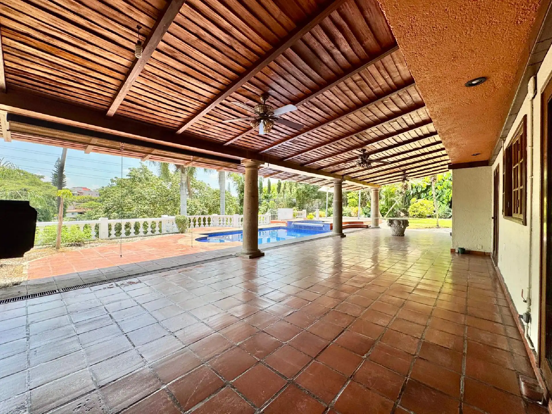 Amplio Comedor • Cocina grande equipada (remodelada) • Sala amplia • Antecomedor • Salón-bar • Medio baño • Estupenda terraza con chimenea • Magnífica alberca climatizada • Jardín maduro, grande y muy bonito • Área de lavado • Una oficina/home office con baño • Estacionamiento para 8 autos, 5 de ellos techados • Cuarto de servicio con baño • 2 cisternas de 10,000 litros cada una • Hidroneumático