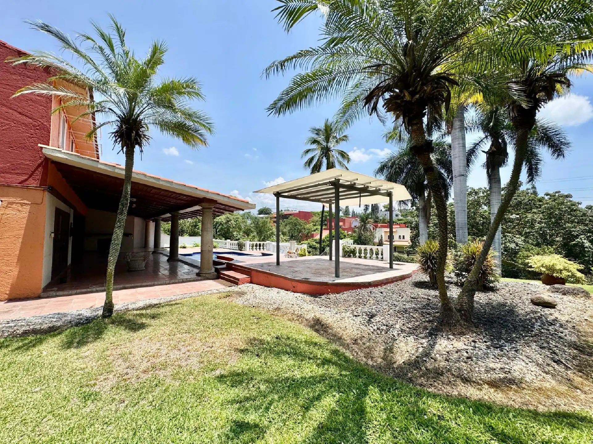 Hermosa residencia estilo Cuernavaca moderno en venta en avenida Palmira en privada con vigilancia 24/7. Fácil acceso a la carretera a CDMX y a Acapulco.