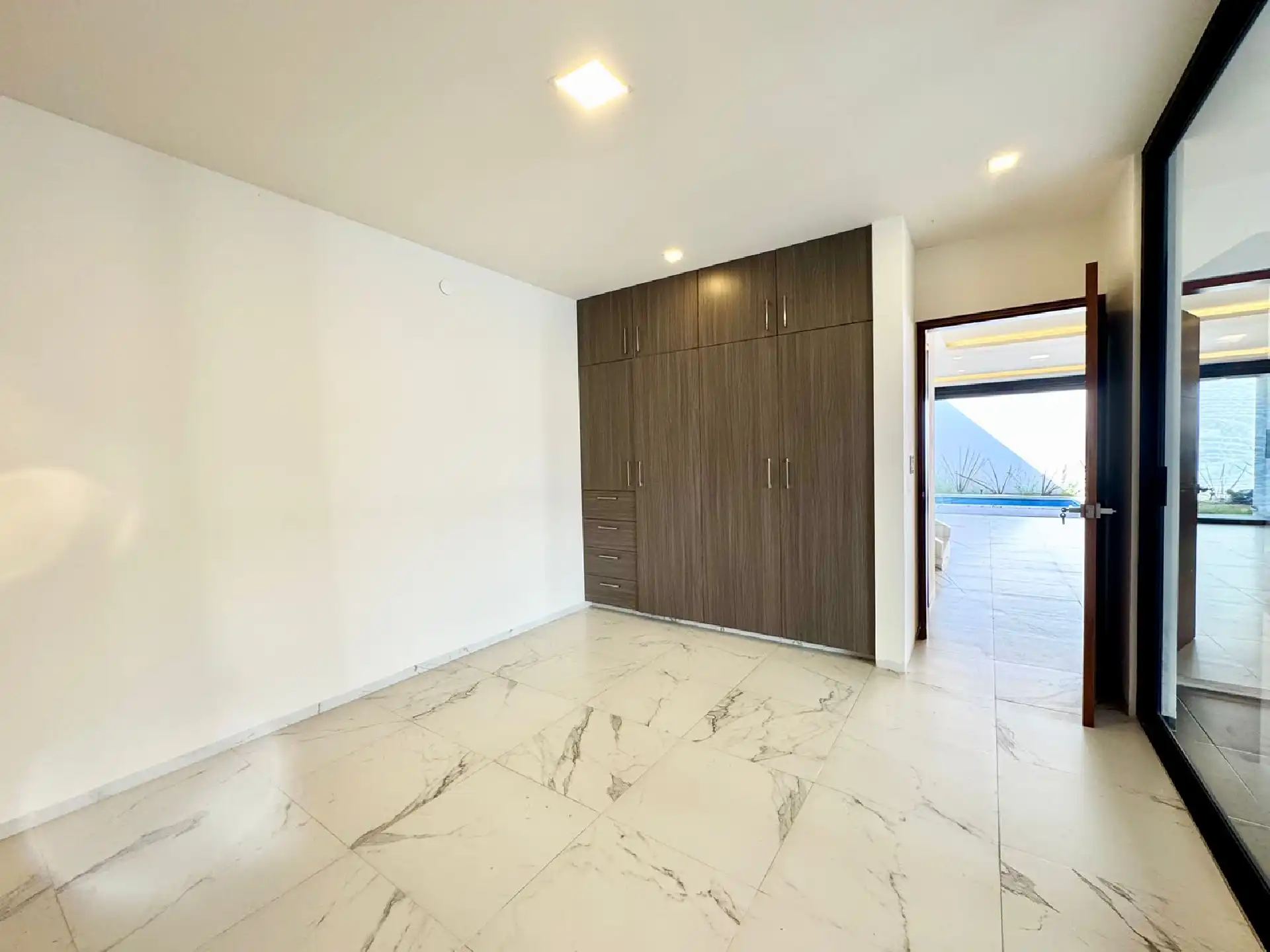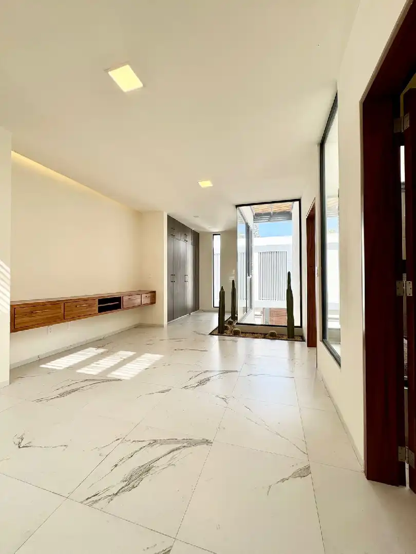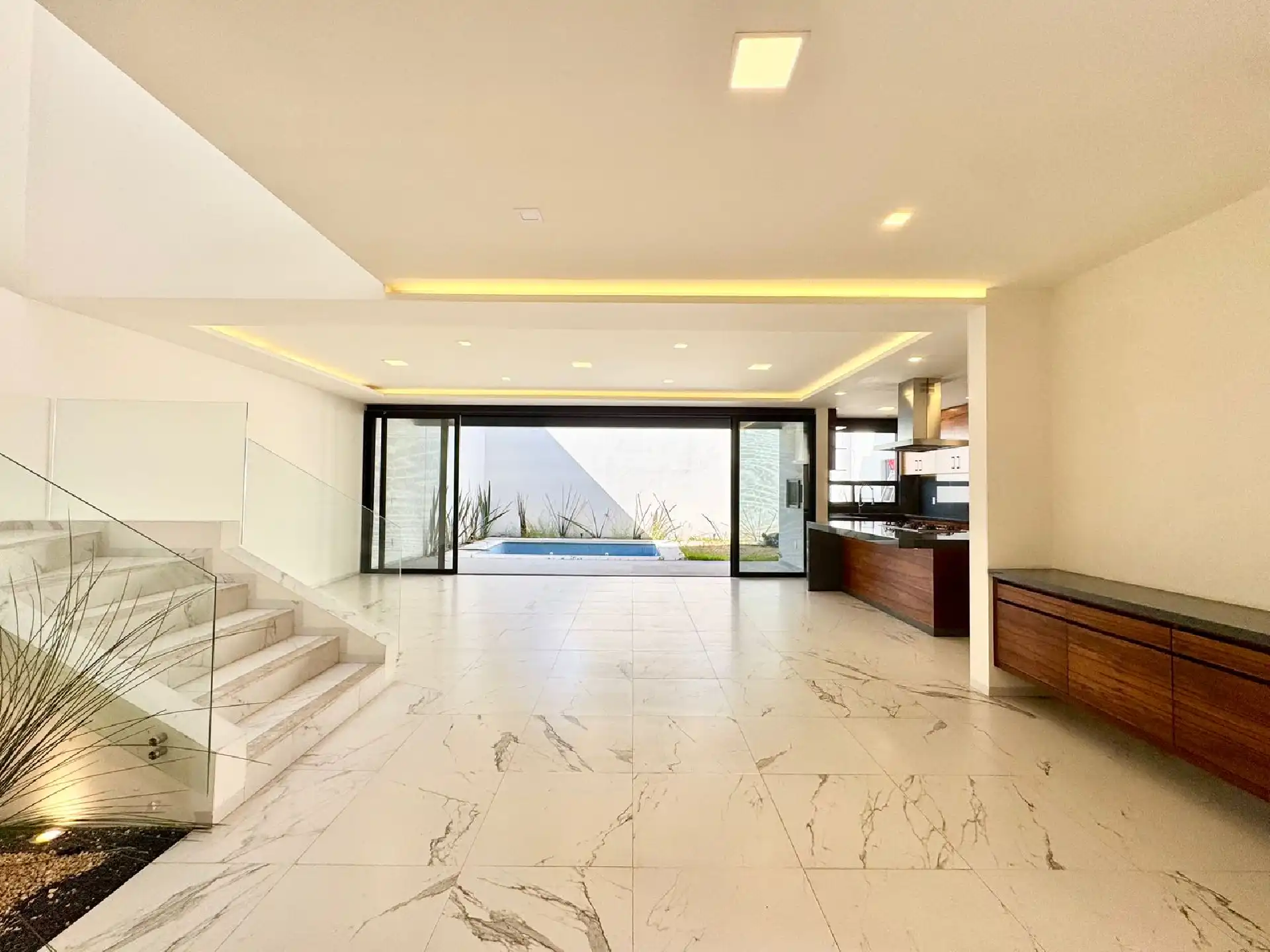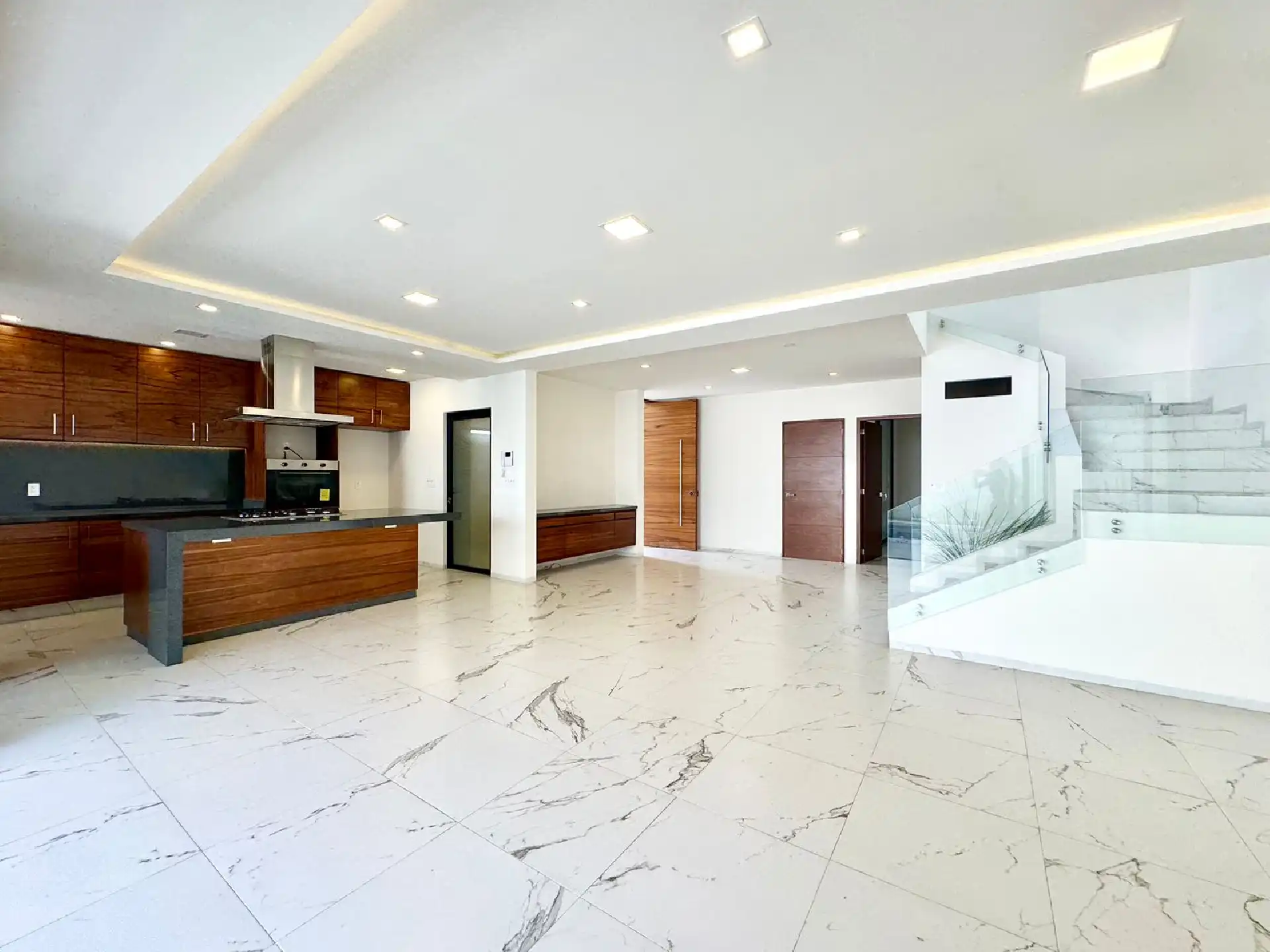 Planta baja: • Casa con iluminación inteligente. • Garage eléctrico tipo americano para 2 autos. • Sala comedor con ventanal corredizo y credenza con barra de mármol belaggio. • Amplia cocina totalmente equipada con isla y cubierta de granito y acabado de tzalam. • Cuarto de lavado y alacena. • Cuarta recámara con clóset y baño completo. • Medio baño de visitas. • Jardín con piscina y terraza.