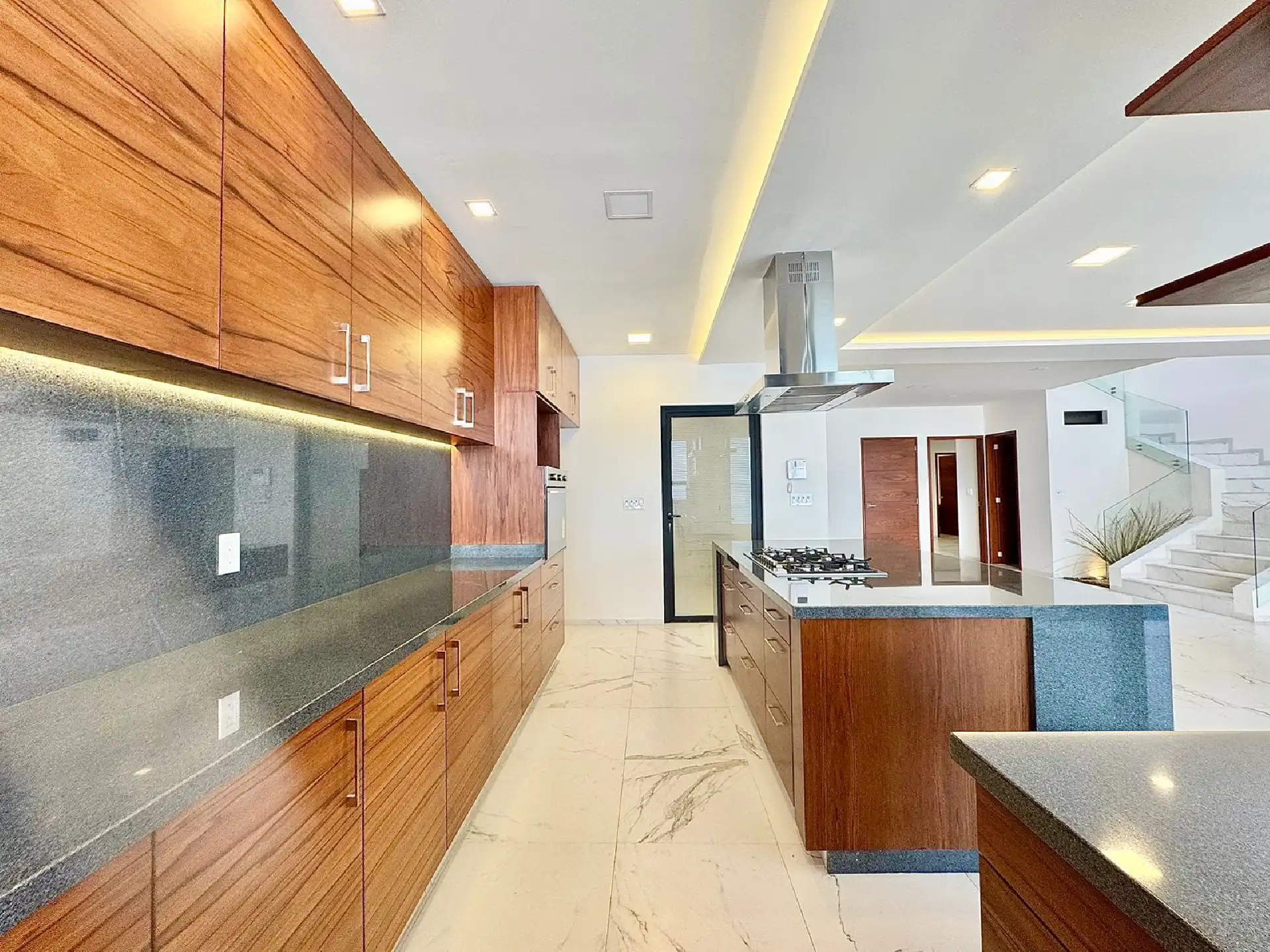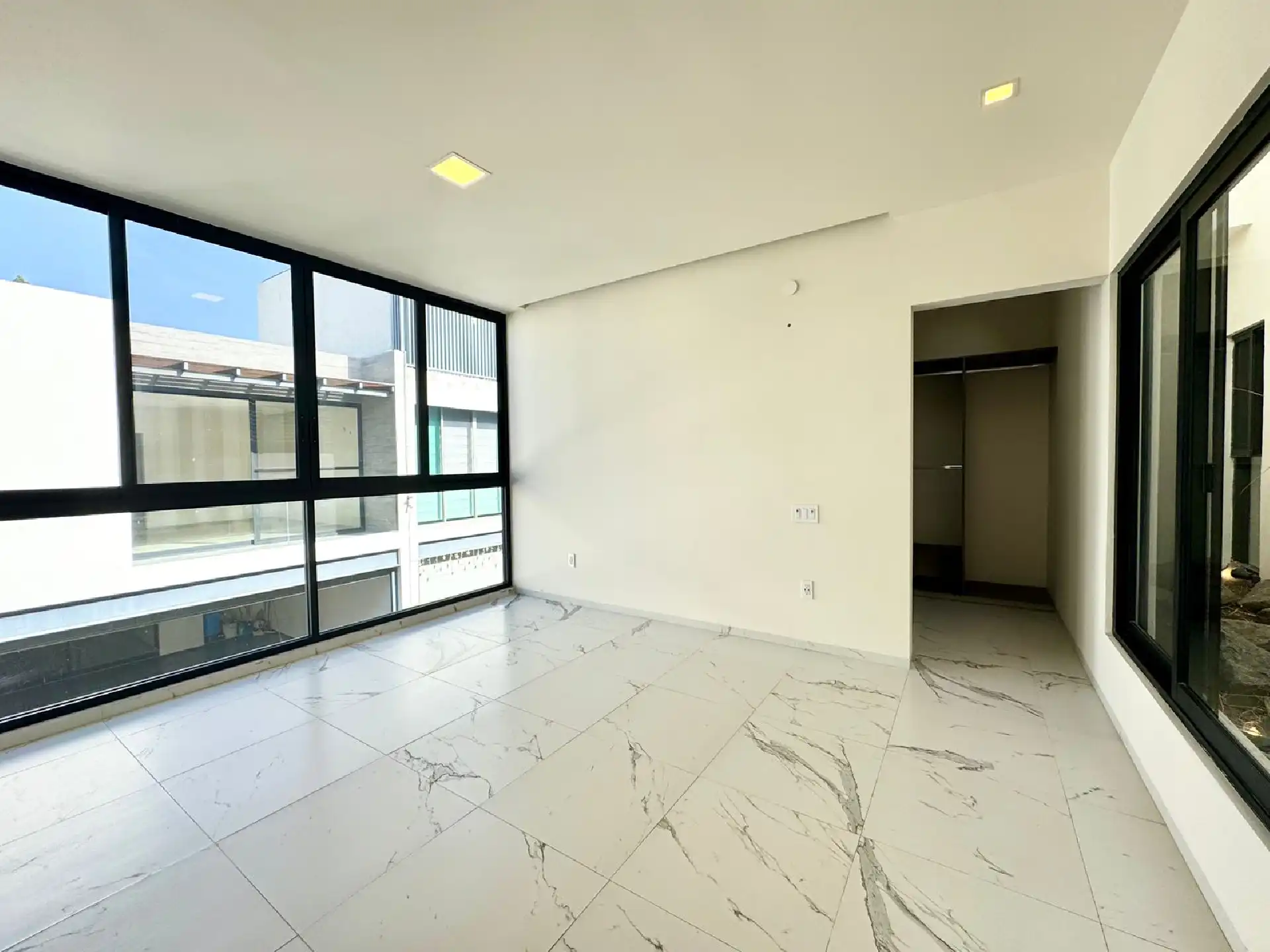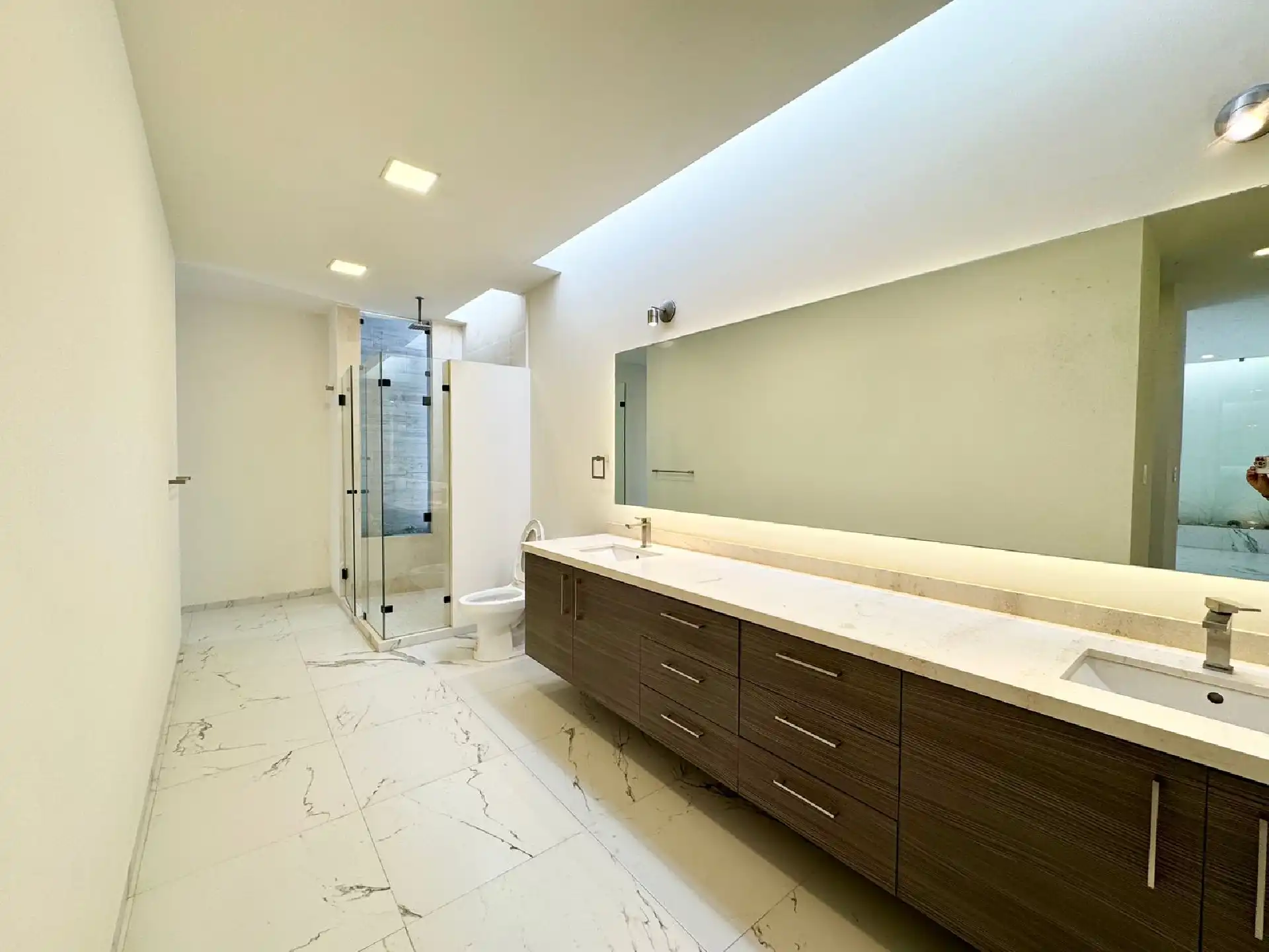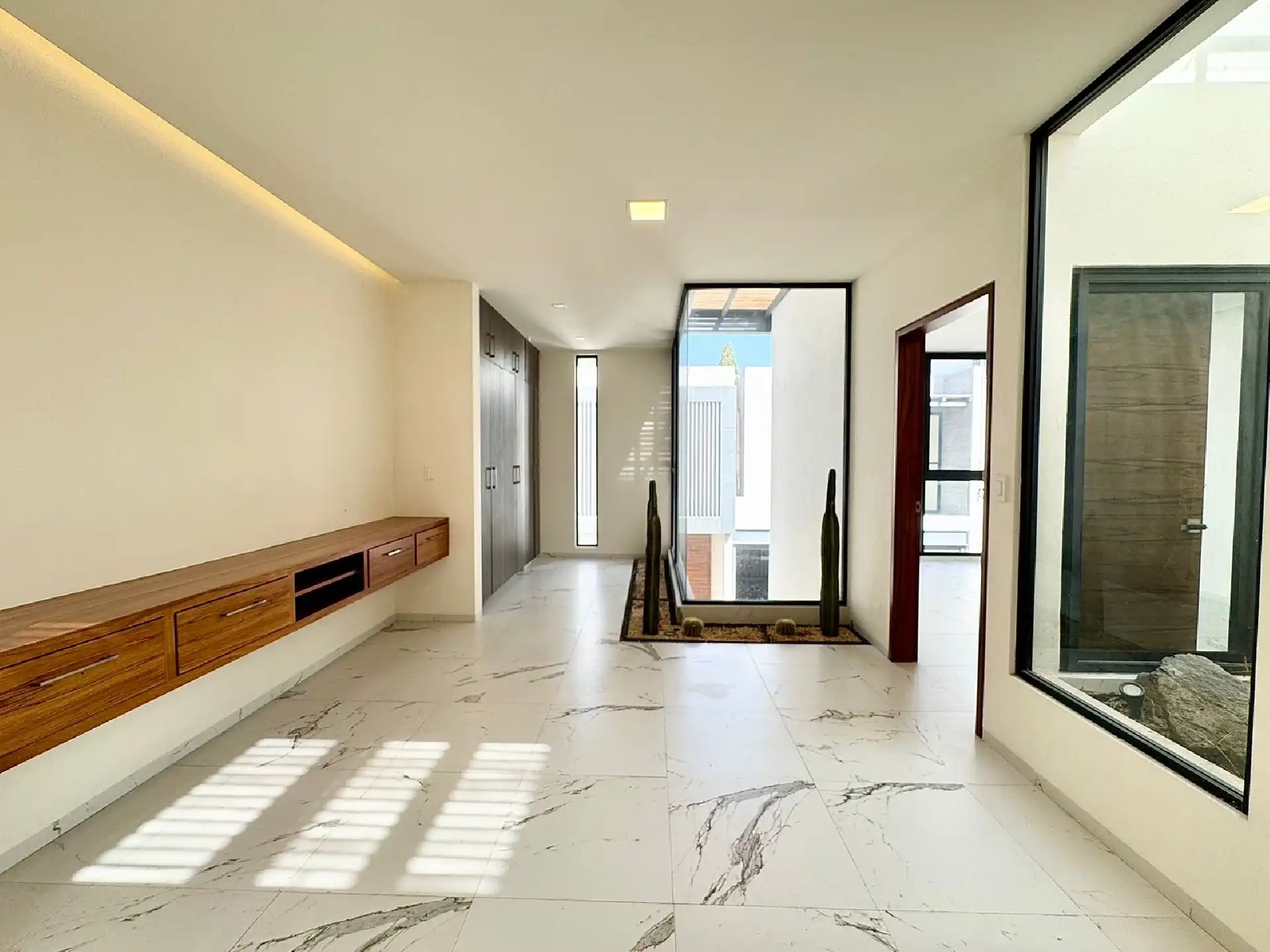 Planta baja: • Casa con iluminación inteligente. • Garage eléctrico tipo americano para 2 autos. • Sala comedor con ventanal corredizo y credenza con barra de mármol belaggio. • Amplia cocina totalmente equipada con isla y cubierta de granito y acabado de tzalam. • Cuarto de lavado y alacena. • Cuarta recámara con clóset y baño completo. • Medio baño de visitas. • Jardín con piscina y terraza.