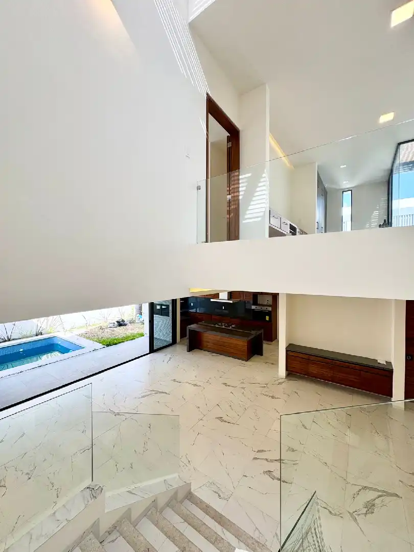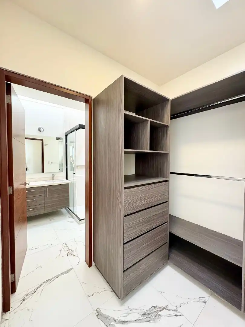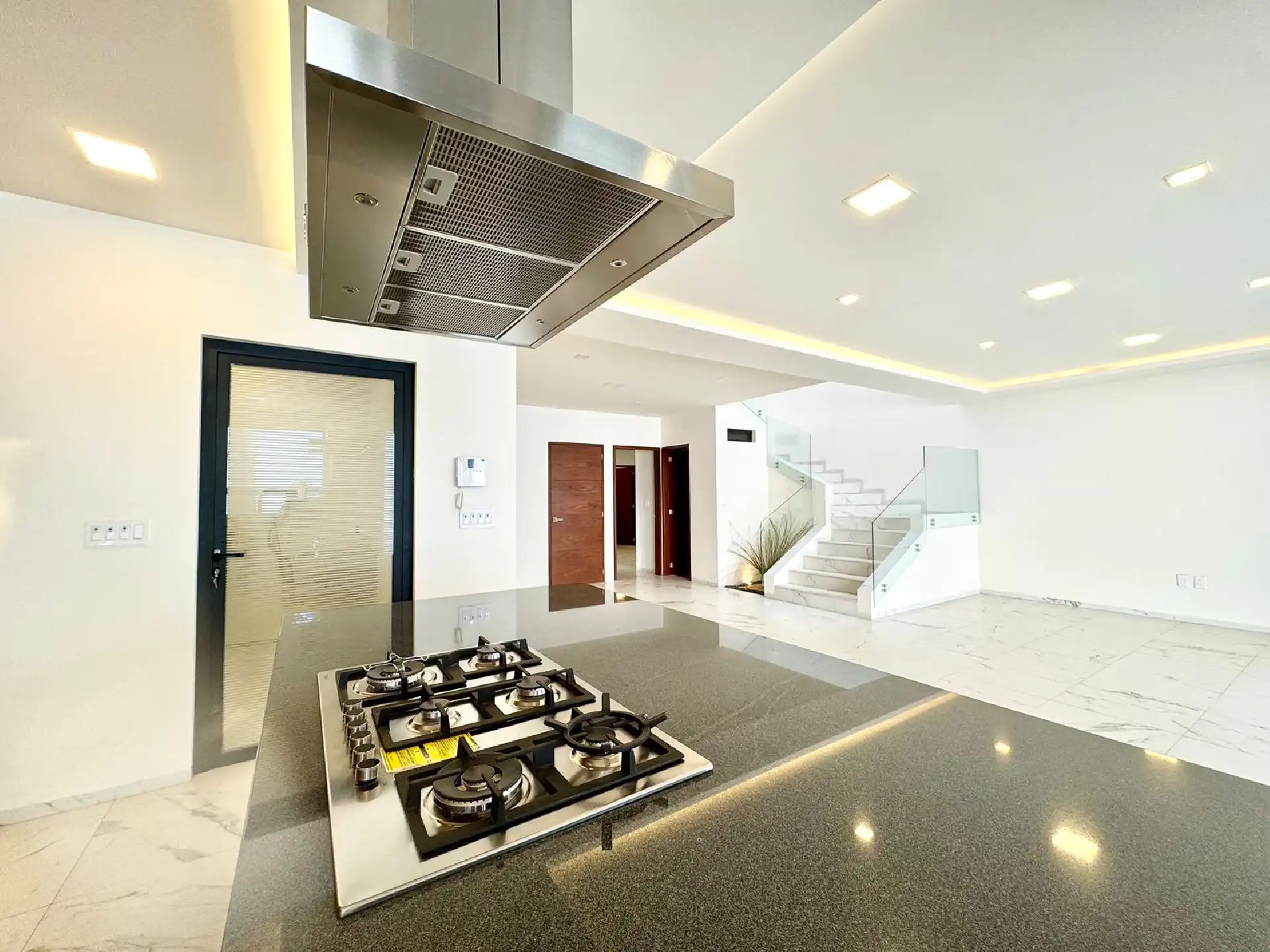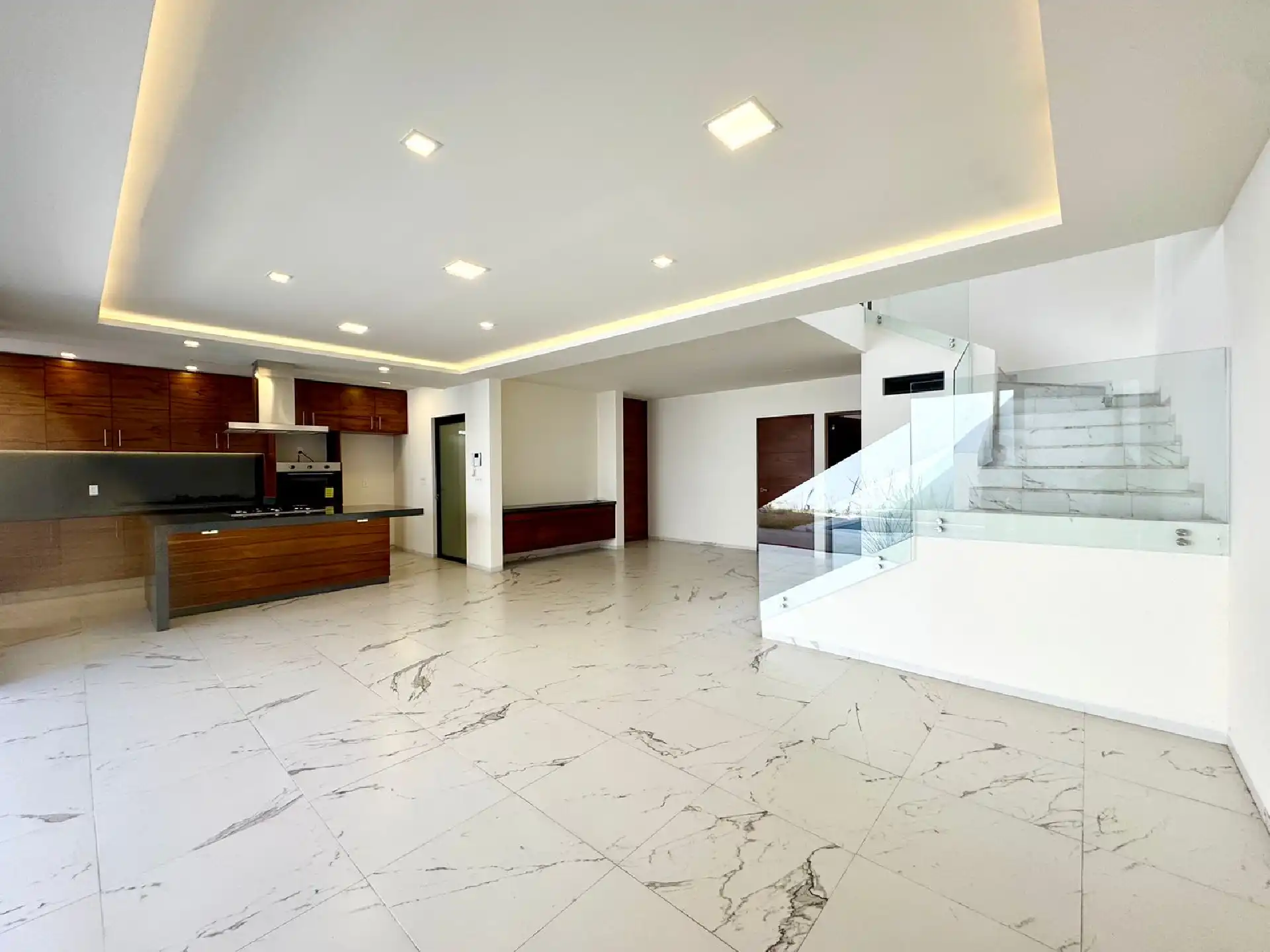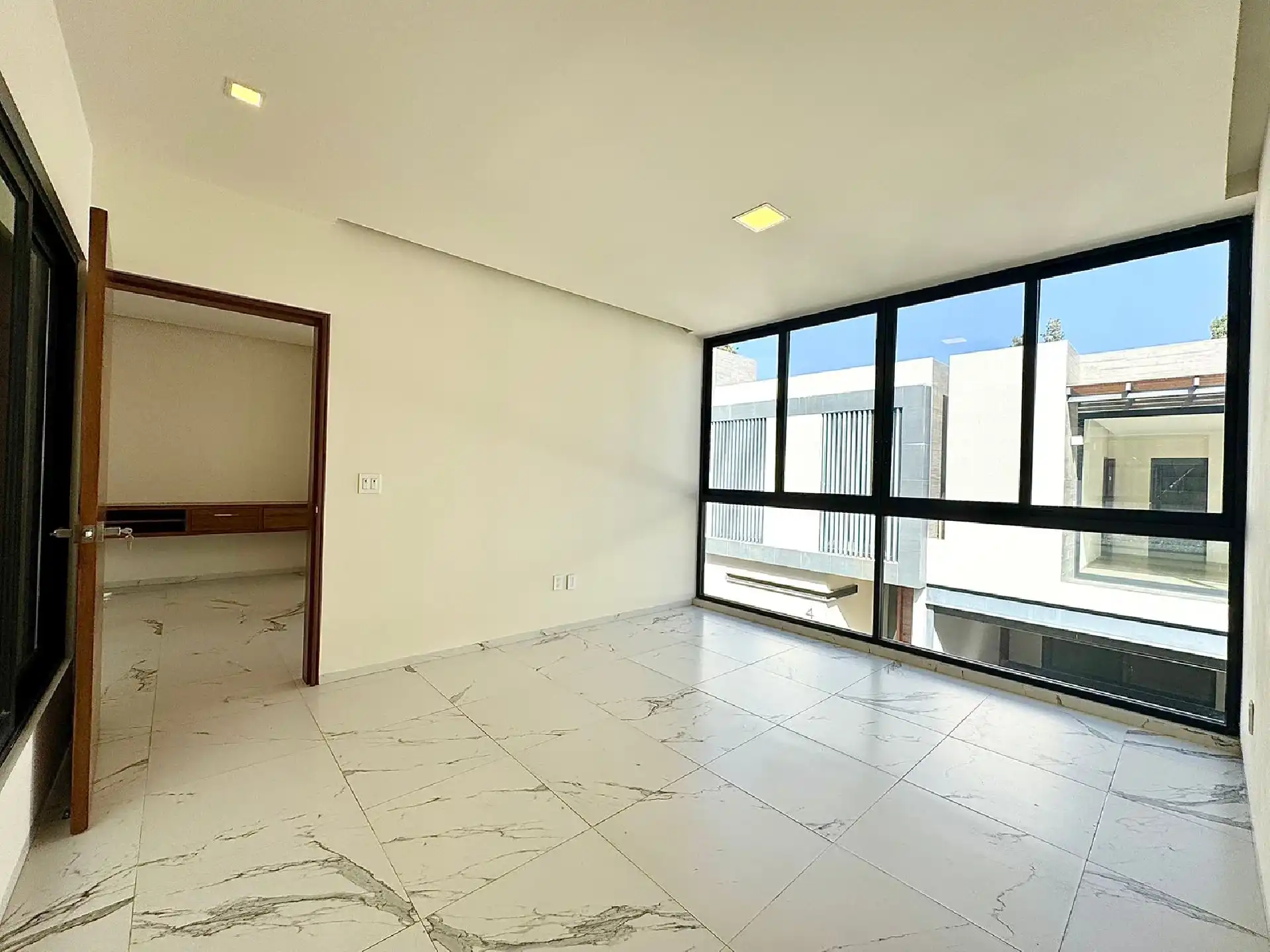 Planta baja: • Casa con iluminación inteligente. • Garage eléctrico tipo americano para 2 autos. • Sala comedor con ventanal corredizo y credenza con barra de mármol belaggio. • Amplia cocina totalmente equipada con isla y cubierta de granito y acabado de tzalam. • Cuarto de lavado y alacena. • Cuarta recámara con clóset y baño completo. • Medio baño de visitas. • Jardín con piscina y terraza.