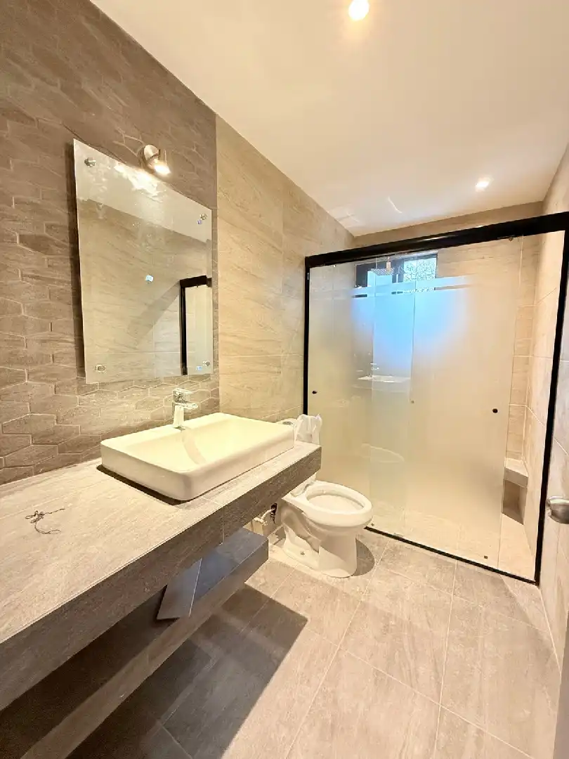 • 145 m2 con acabados de lujo. • Sala, comedor, cocina equipada. • 2 recamaras con closet. • 2 baños completos con cancel de vidrio templado. • Cuarto de lavado con instalaciones para lavadora, secadora y calentador. • Preparación para sistema de aire acondicionado. • 2 amplios estacionamientos por departamento.